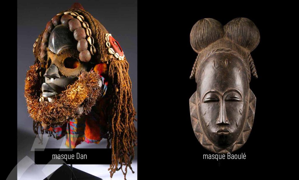 The galleries specialising in tribal art will feature masks and sculptures from West Africa, regions rich in spiritual and artistic heritage. A Dan mask from Côte d’Ivoire, known for its abstract and expressive shape symbolizing the spirits of the forest, will be presented as a centerpiece, testifying to the expertise of Ivorian artisans in ritual dance and community protection. These works, from private and public collections, dialogue with pieces from other West African sources such as the Baoulé or Senufo masks, highlighting the vitality of the African art market in Brussels.
