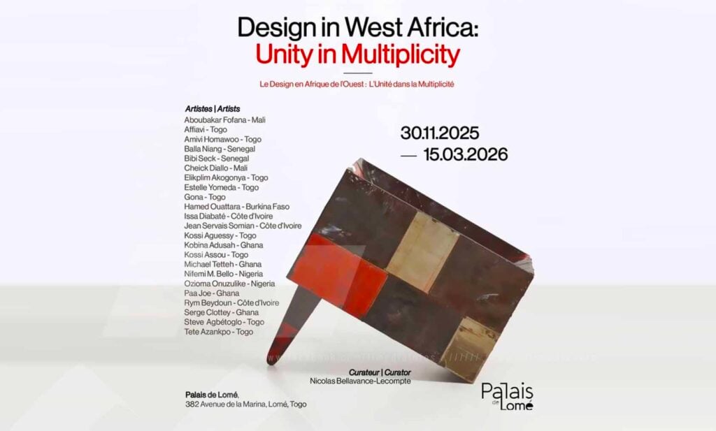 Until 15 March 2026, the Palais de Lomé hosts the exhibition “Design in West Africa”, a vibrant celebration of West African creativity through more than 20 designers from the region. The exhibition highlights the diversity of materials, craftsmanship and contemporary aesthetics that shape African design today. From everyday objects to conceptual pieces, each work reflects a conversation between tradition and modernity, rooted in local realities but open to global innovation. « Design in West Africa » illustrates the strong voice of a new generation of creators, who are reconnecting with the cultural riches of their territories while offering a bold vision of the future.